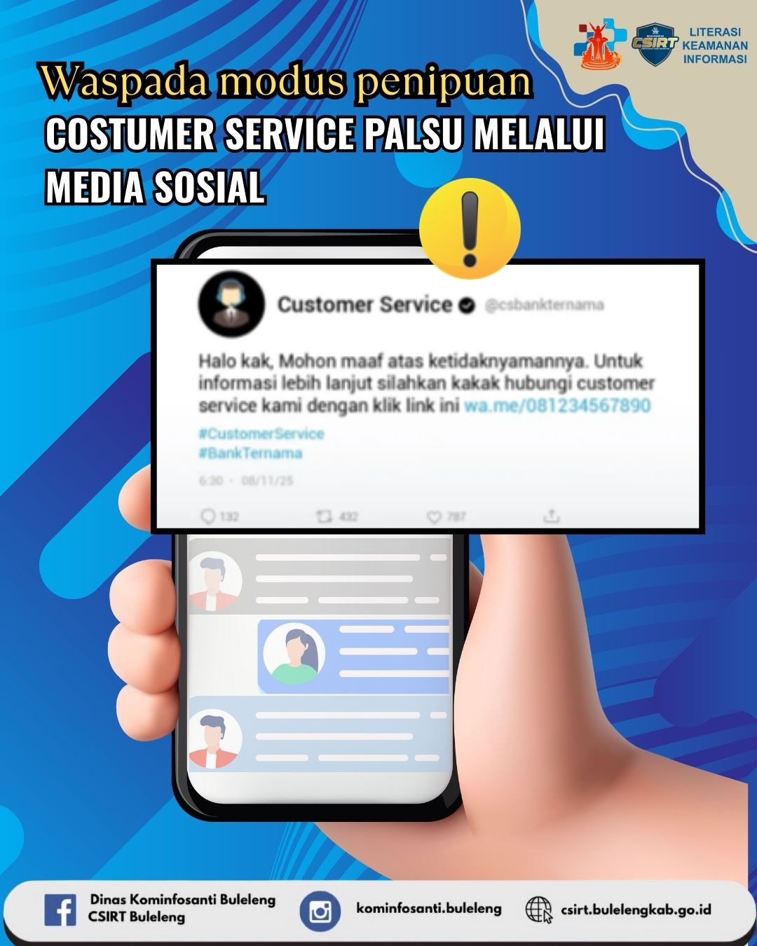 Jangan mudah percaya dengan akun customer service yang menghubungi kamu lewat media sosial