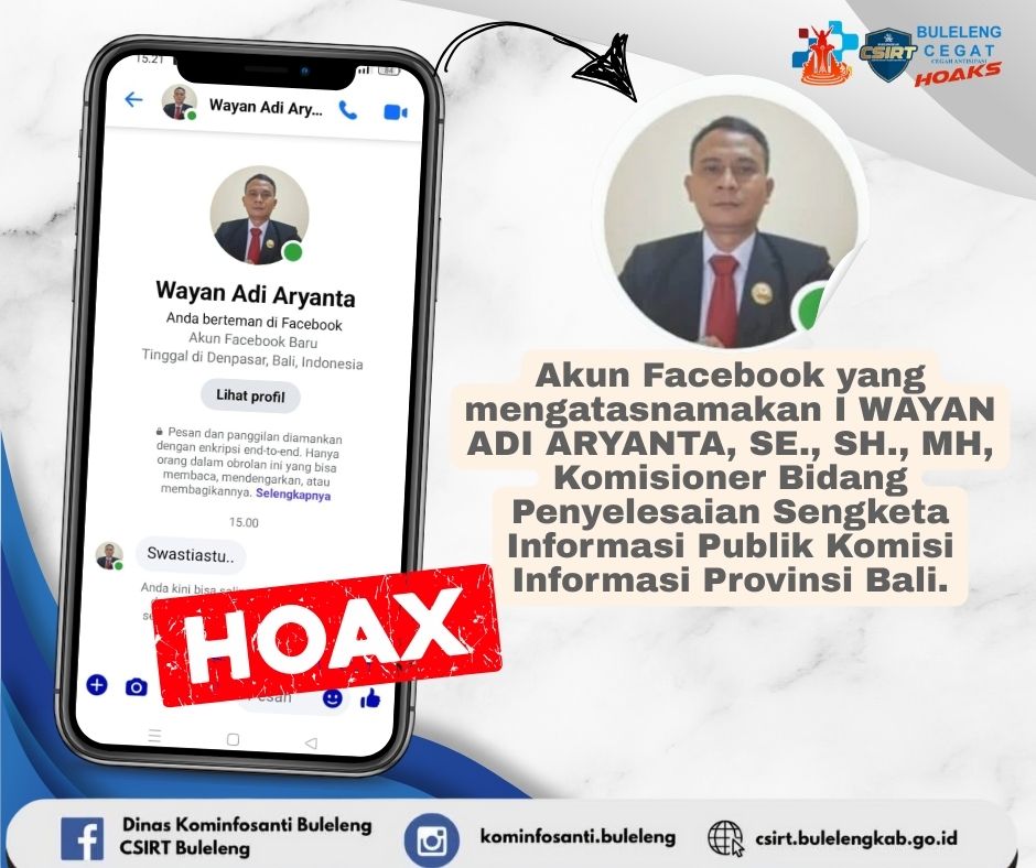 [Hoaks] Akun Facebook yang mengatasnamakan Komisioner Bidang Penyelesaian Sengketa Informasi Publik Komisi Informasi Provinsi Bali