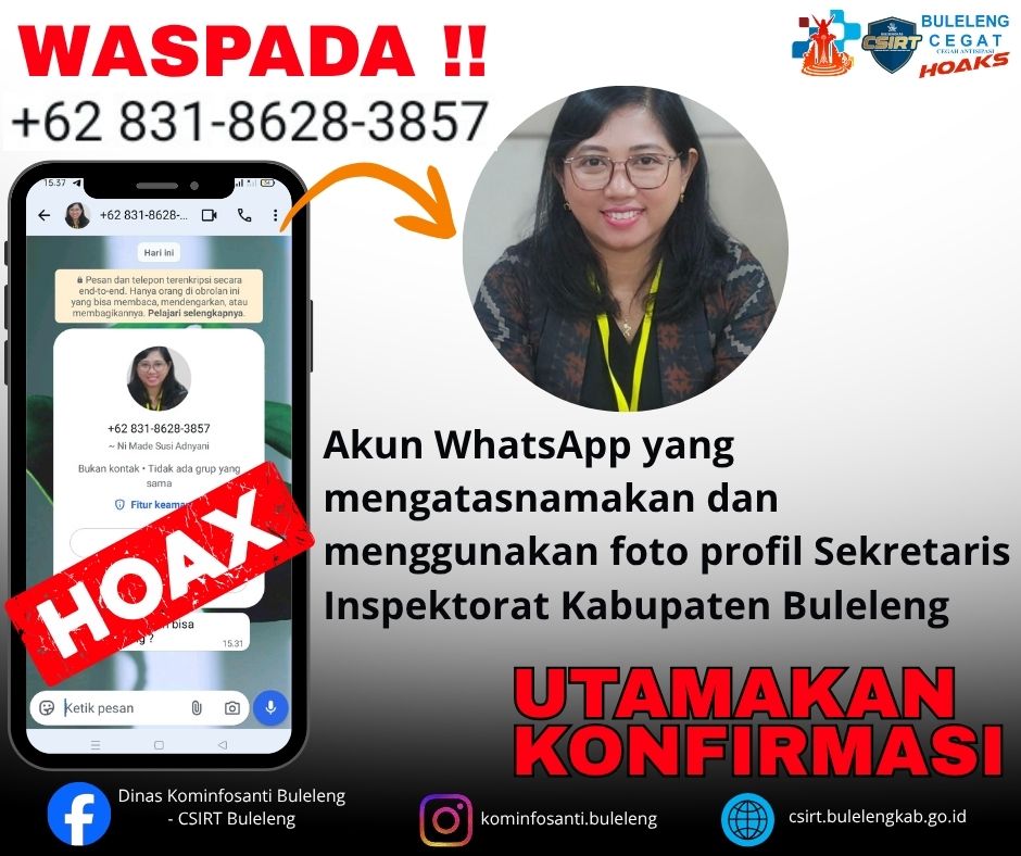 [Hoaks] Akun WhatsApp yang mengatasnamakan dan menggunakan foto profil Sekretaris Inspektorat Kabupaten Buleleng