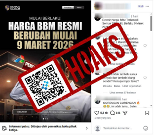 Beredar sebuah unggahan di media sosial yang mengklaim bahwa harga bahan bakar minyak (BBM) resmi naik pada 9 Maret 2026. Perubahan harga BBM berlaku baik terhadap Pertamina maupun BBM swasta seperti Shell, British Petroleum (BP), dan Vivo.Faktanya, klaim yang menyatakan bahwa harga BBM akan naik serentak pada 9 Maret 2026 adalah hoaks. Dilansir dari tirto.id, Pihak Pertamina menegaskan bahwa informasi tersebut tidak benar, dan meminta masyarakat untuk memantau penyesuaian harga di situs resmi mereka yakni www.pertamina.com. Juru Bicara Kementerian ESDM Dwi Anggia juga menyebut, harga BBM subsidi tidak akan naik menjelang Idul Fitri 1446 H, meskipun harga minyak dunia terus berfluktuasi akibat konflik geopolitik di Timur Tengah.