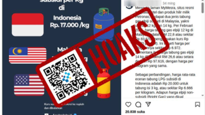 Beredar sebuah unggahan di media sosial yang membagikan informasi harga LPG di Indonesia lebih mahal dibandingkan Malaysia dan Amerika Serikat (AS).Faktanya, klaim data dalam infografik perbandingan harga LPG di Indonesia, Malaysia, dan AS yang beredar adalah hoaks. Dilansir dari tempo.co, hasil penelusuran infografis tersebut tidak sesuai dengan data resmi pemerintah Indonesia, Malaysia, dan Amerika Serikat. Menurut Energy Information Administration (EIA), perbedaan harga propana di tiap negara dipengaruhi sejumlah faktor seperti peningkatan permintaan saat musim dingin, lokasi geografis, ketersediaan komoditas energi lain, ukuran tangki, dan kondisi distribusi di wilayah setempat.