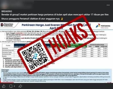 Beredar sebuah unggahan di media sosial Facebook yang mengeklaim bahwa harga Bahan Bakar Minyak (BBM) non subsidi Pertamax akan naik pada April 2026.Faktanya, klaim tersebut adalah tidak benar. Dilansir dari kompas.com, belum ada pengumuman resmi mengenai harga BBM non subsidi per 1 April 2026. Corporate Secretary Pertamina Patra Niaga Roberth MV Dumatubun mengatakan informasi proyeksi kenaikan harga BBM non subsidi tersebut tidak dapat dipertanggungjawabkan. Masyarakat diimbau memantau saluran komunikasi resmi Pertamina untuk mendapatkan informasi valid terkait harga BBM. Informasi valid harga BBM Pertamina hanya melalui saluran resmi www.pertamina.com.