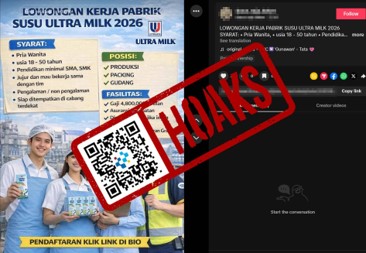 Beredar unggahan TikTok yang menginformasikan lowongan kerja di pabrik susu Ultra Milk dengan mencantumkan syarat serta kualifikasi pendaftaran. Unggahan tersebut mengarahkan pelamar untuk mendaftar melalui tautan di bio akun.Faktanya, setelah dilakukan penelusuran dengan mengklik tautan tersebut, mengarah kelaman tidak resmi yang meminta data pribadi seperti nama lengkap sesuai KTP, usia, jenis kelamin, dan nomor Telegram aktif. Melalui akun Instagram resmi Ultra Milk @mymilk_id, ditemukan highlight story berisi himbauan untuk waspada terhadap penipuan yang mengatasnamakan Ultra Milk. Selain itu, pada situs web rekrutmen Ultrajaya juga terdapat pemberitahuan di halaman utama yang mengingatkan masyarakat agar berhati-hati terhadap modus penipuan. Dalam imbauan tersebut ditegaskan bahwa seluruh proses seleksi rekrutmen Ultrajaya dilakukan secara online dan hanya melalui situs web resmi perusahaan.