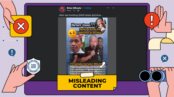 Akun Facebook “Bima Silhoute” pada Jumat (26/9/2025) membagikan video berisi narasi:“Bener tooo??? Bahlil LADALAA akhirnya di periksaBahlil mentri ESDM jadi tersangka korupsi MigasKejagung tetapkan dan menerangkan Bahlil mentri ESDM sebagai tersangka Dalam kasus korupsi di Migas dengan Capaian yang pantastik”Tim Pemeriksa Fakta Mafindo (TurnBackHoax) menelusuri tangkapan layar konten menggunakan Google Lens. Hasil penelusuran mengarah ke video di kanal YouTube Kompas.com “Kejagung Geledah Ditjen Migas ESDM, 5 Dus Dokumen dan 15 Ponsel Disita”.Dalam video yang tayang Selasa (11/2/2025) itu, diketahui kalau Kejaksaan Agung (Kejagung) telah menggeledah kantor Direktorat Jenderal Minyak dan Gas Bumi (Ditjen Migas) kurang lebih selama 7 jam pada Senin (10/2/2025). Penggeledahan dilakukan untuk penyelidikan kasus dugaan korupsi tata kelola minyak mentah pada PT Pertamina, Subholding, dan Kontraktor Kerja Sama (KKKS) tahun 2018-2023.TurnBackHoax lalu memasukkan kata kunci “Bahlil jadi tersangka korupsi migas” ke mesin pencarian Google. Hasil penelusuran mengarah ke beberapa artikel dan berita.Pertama, berita tempo.co “Dugaan Korupsi Pertamina, Bahlil: Kami Menghargai Proses Hukum yang Berjalan” yang tayang Rabu (26/2/2025). Laporan ini menyebut Menteri Energi dan Sumber Daya Mineral (ESDM) Bahlil Lahadalia menghormati proses hukum yang tengah berlangsung terkait dugaan korupsi tata kelola minyak mentah yang menyeret nama petinggi anak usaha PT Pertamina (Persero).Kedua, artikel money.kompas.com “Daftar 18 Tersangka Kasus Korupsi Pertamina, Termasuk Riza Chalid” yang diperbarui pada Sabtu (12/7/2025). Artikel ini menyebut bahwa Kejagung telah menetapkan 18 tersangka kasus korupsi tata kelola minyak mentah dan produk kilang di tubuh PT Pertamina (Persero). Dalam artikel ini, tidak tertulis nama Menteri Bahlil sebagai tersangka kasus korupsi tersebut.Sepanjang penelusuran, tidak ditemukan informasi dari sumber kredibel yang membenarkan klaim “Menteri ESDM Bahlil jadi tersangka korupsi migas”.