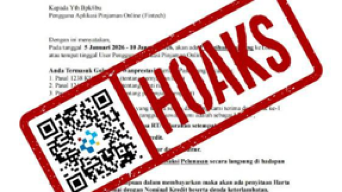 Beredar di media sosial sebuah surat yang diklaim sebagai surat penugasan tim lapangan atau debt collector dari Otoritas Jasa Keuangan (OJK). Surat tersebut mencantumkan logo OJK, logo Polri, dan logo Bank Indonesia, sehingga tampak seperti dokumen resmi.Faktanya, klaim tersebut adalah tidak benar. Melalui akun Instagram resmi Otoritas Jasa Keuangan @ojkindonesia, pihaknya mengklarifikasi bahwa informasi tersebut adalah hoaks. OJK tidak pernah menerbitkan surat penugasan tim lapangan sebagaimana yang beredar di media sosial. OJK juga mengimbau masyarakat untuk selalu memeriksa kebenaran informasi yang mengatasnamakan lembaganya melalui kontak OJK 157.