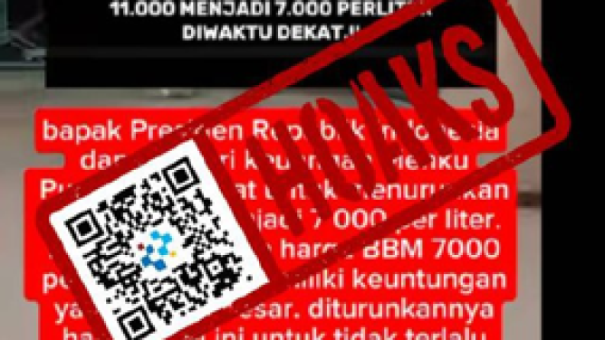 Beredar sebuah unggahan video di media sosial yang mengklaim bahwa Purbaya dan Prabowo sepakat turunkan harga BBM jadi Rp7.000 per liter dalam waktu dekat.Faktanya, klaim bahwa Purbaya dan Prabowo sepakat turunkan harga BBM jadi Rp7.000 per liter dalam waktu dekat adalah hoaks. Dilansir dari tirto.id, tidak ada keputusan resmi maupun kesepakatan Presiden Prabowo Subianto dan Menteri Keuangan Purbaya Yudhi Sadewa untuk menurunkan harga BBM. Penurunan harga BBM dilakukan dengan mengacu pada formula harga dari pemerintah serta mengikuti tren harga rata-rata publikasi minyak dunia, seperti Argus atau Mean of Platts Singapore (MOPS), dan mempertimbangkan nilai tukar rupiah terhadap dolar Amerika Serikat.