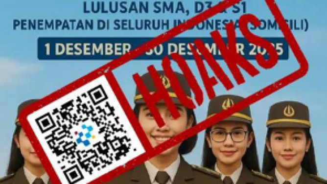 Beredar unggahan di media sosial TikTok berisi informasi mengenai pendaftaran Calon Pegawai Negeri Sipil (CPNS) Kejaksaan Agung pada Desember 2025. Calon pelamar diminta mendaftar pada tautan yang ada pada bio akun TikTok tersebut.Faktanya, klaim tersebut adalah tidak benar. Dilansir dari akun Instagram resmi Biro Kepegawaian Kejaksaan Agung @biropegkejaksaan, Kejaksaan Agung Republik Indonesia tidak pernah membuka pendaftaran CPNS atau Pegawai Pemerintah dengan Perjanjian Kerja (PPPK) melalui situs tidak resmi. Tautan pada akun tersebut juga merupakan tautan palsu atau tidak resmi yang meminta pengguna memasukkan data pribadi dan terindikasi modus phishing.